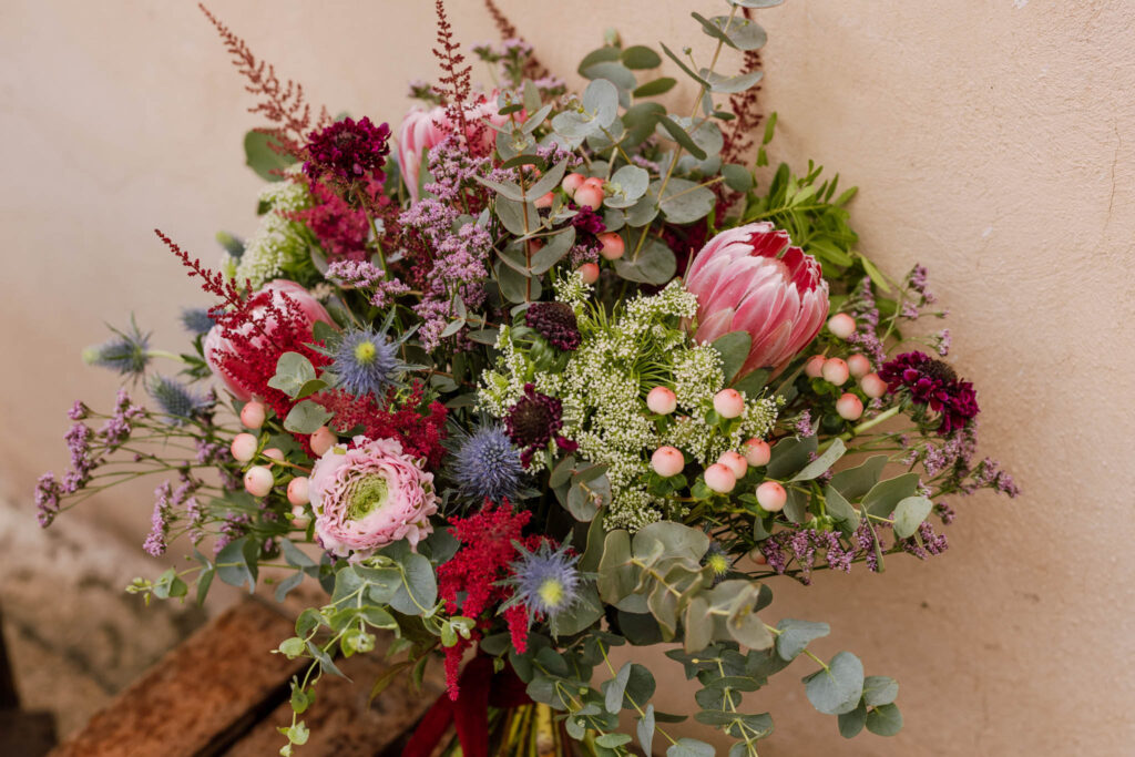 Solo trabajamos con flores de temporada porque son las que duran más y tienen carácter. Buscamos variedades especiales, poco vistas, que hacen tu ramo especial.