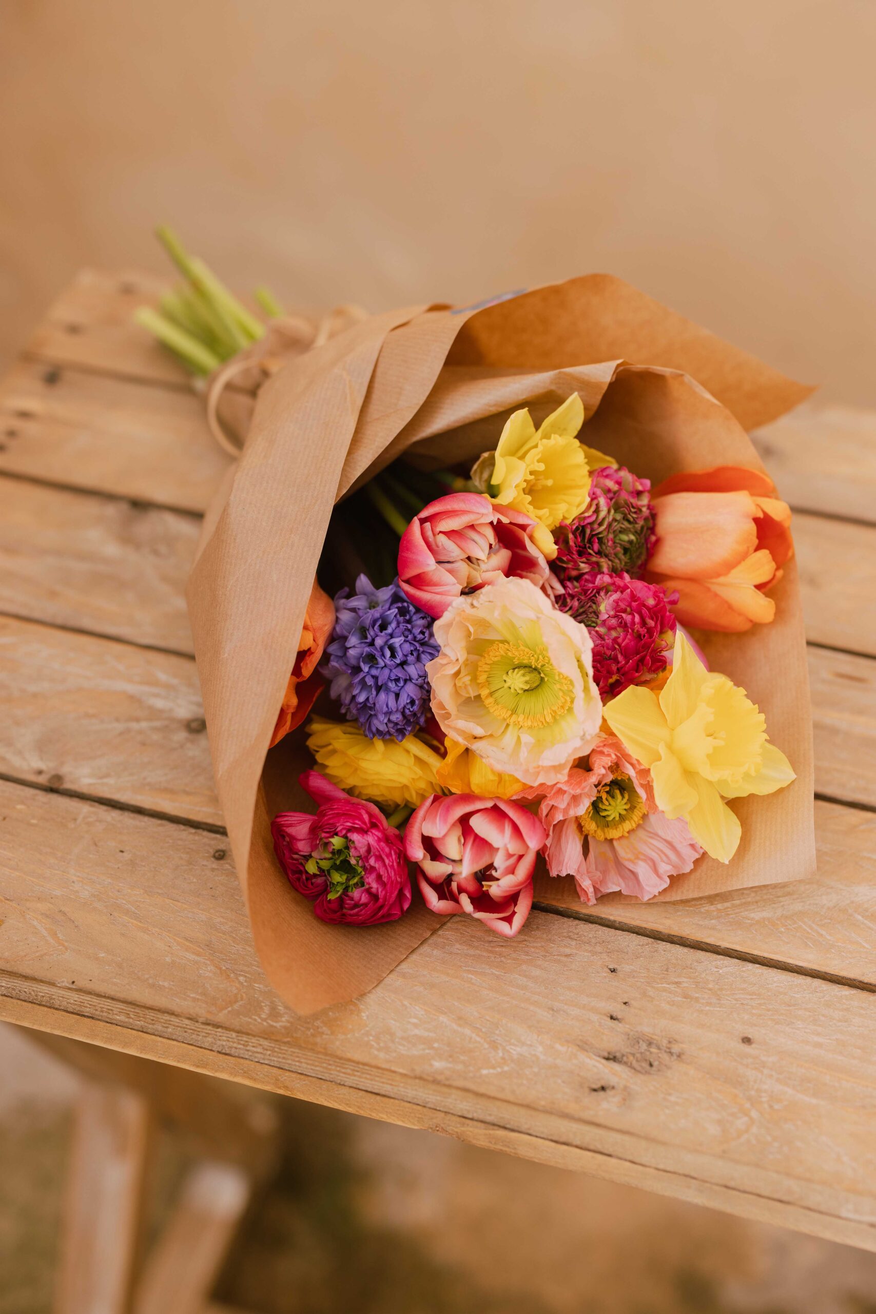 Todos nuestros ramos son personalizados. Aunque tengas una referencia de la tienda, cada uno se diseña en el momento, adaptándose a las flores disponibles y a tus preferencias. Es trabajo artesano, no producción en cadena.