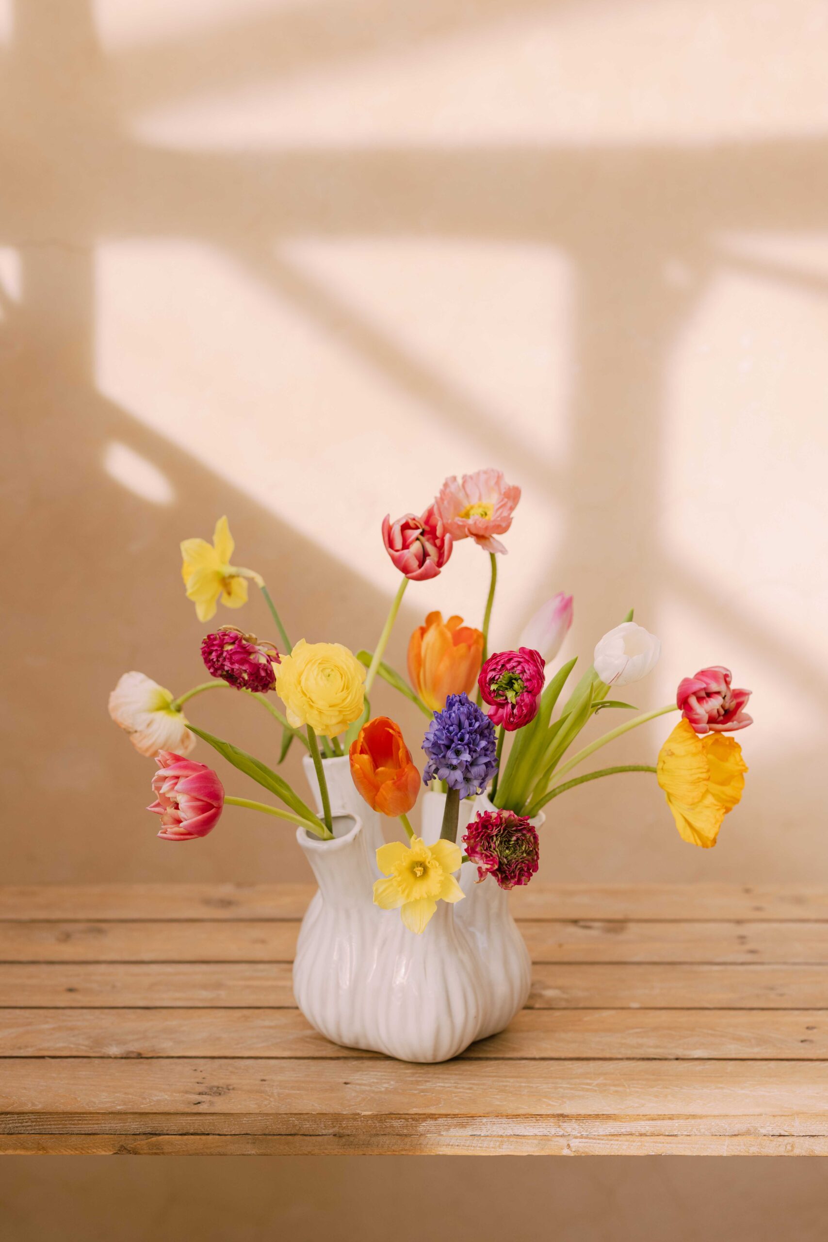 Cada creación es única porque trabajamos con materia viva. Las flores cambian estación a estación, incluso semana a semana.