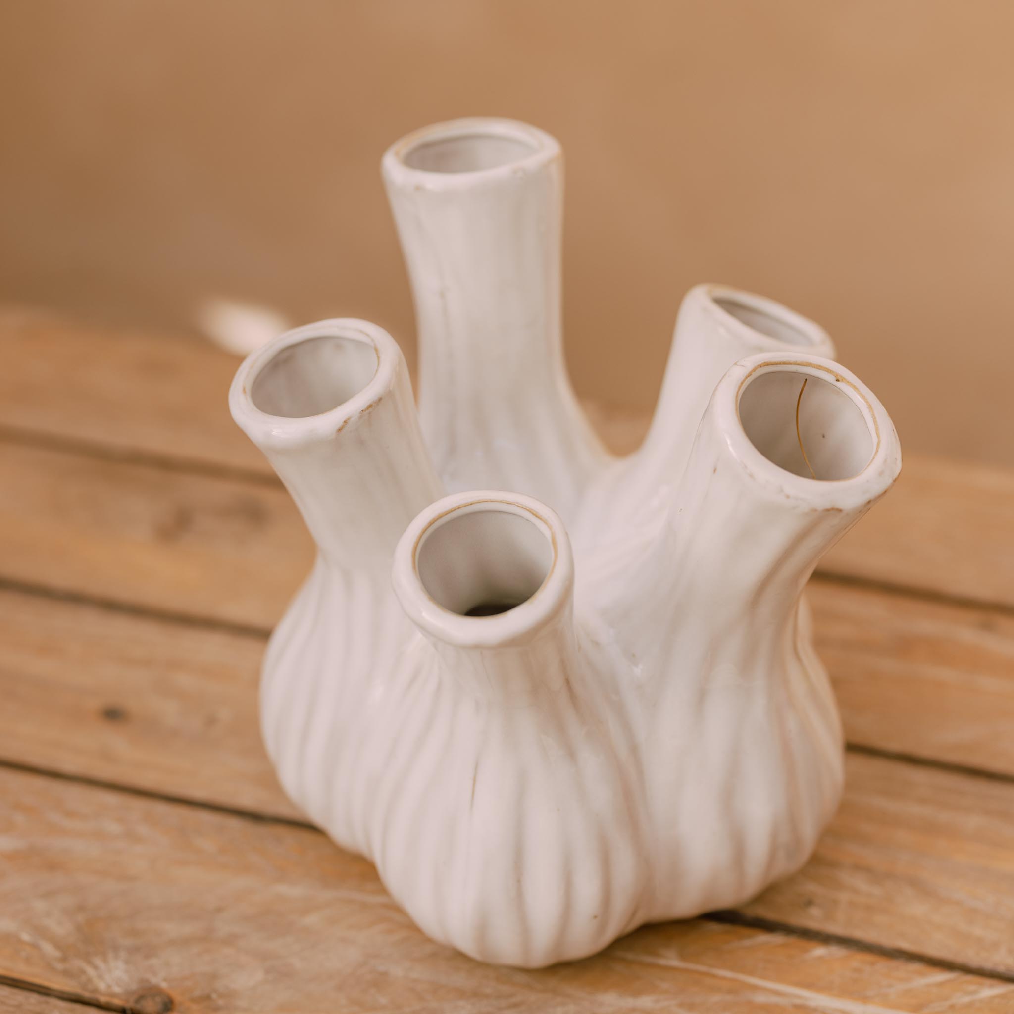 Jarrón de diseño original inspirado en la forma de un bulbo, ideal para colocar plantas bulbosas y pequeñas composiciones botánicas. Su silueta orgánica recuerda a un bulbo de ajo y realza la belleza natural de las plantas, convirtiéndolo en una pieza decorativa muy especial. Perfecto para decorar mesas, estanterías o rincones luminosos del hogar con un toque botánico y natural.