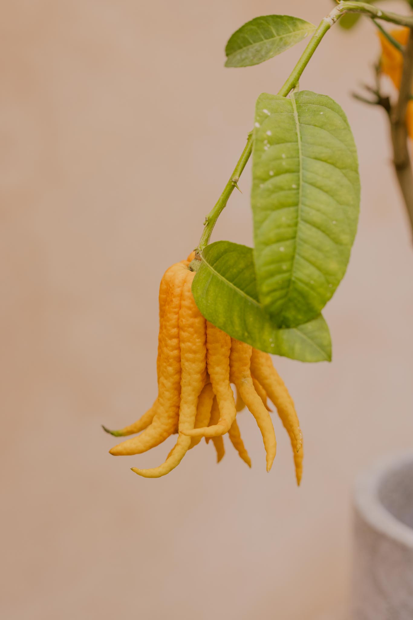 La mano de Buda es un cítrico muy singular, reconocido por su fruto en forma de dedos que recuerda a una mano abierta. Sus hojas verdes y su intenso aroma cítrico la convierten en una planta decorativa muy especial y llamativa.