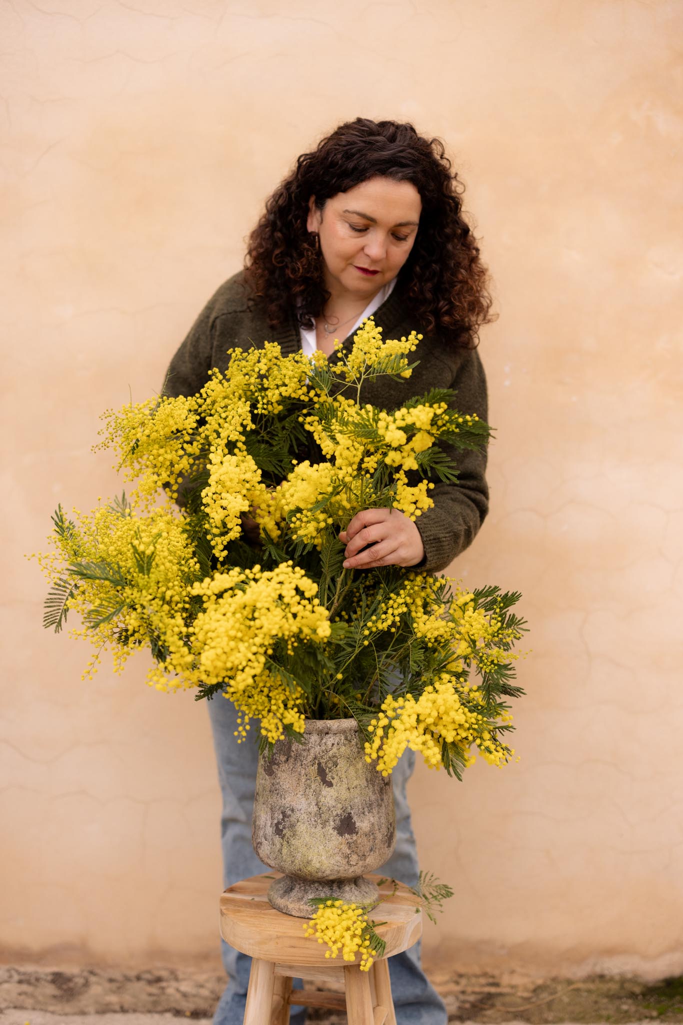 Este arreglo está compuesto por ramas de flores de mimosa. No incluye jarrón.