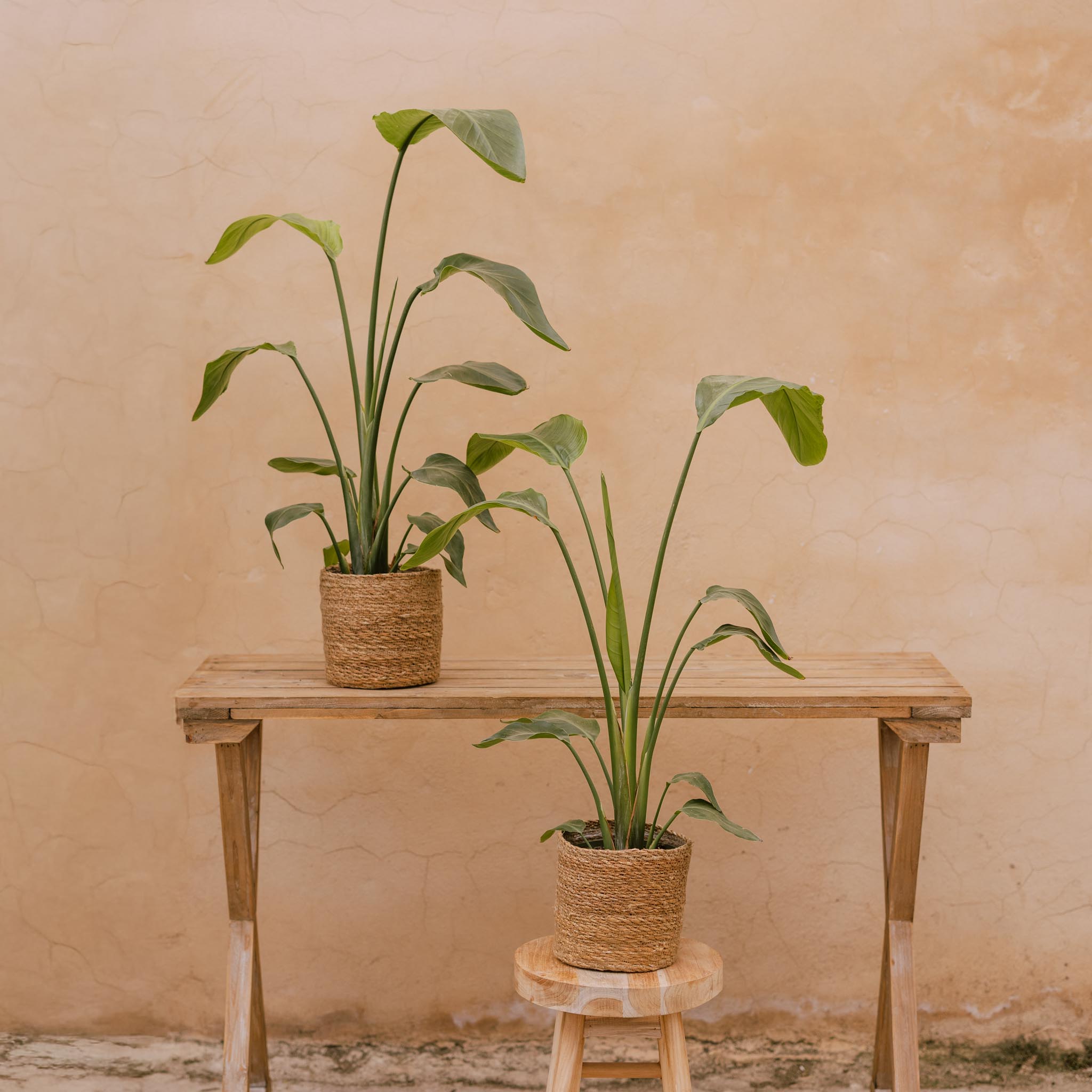 Esta strelitzia es una planta ideal para decorar interiores luminosos, aportando presencia y frescura gracias a sus grandes hojas verdes. Perfecta para salones, entradas o rincones amplios donde pueda convertirse en un punto natural de atención.